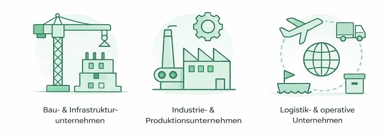 Wir arbeiten mit projektorientierten Unternehmen aus Bauwesen, Logistik und Fertigung, in denen Projektkomplexität und Kostenkontrolle von entscheidender Bedeutung sind.